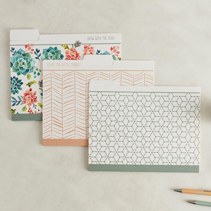 File in style! Organize your notes, documents and more with these beautifully designed file folders!