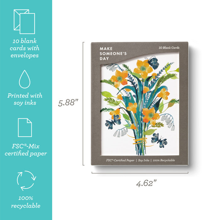 Sprigs of yellow flowers come together to create the elegant cover of these all-occasions note cards. Share smiles and connect with family and friends with these artful boxed note cards.