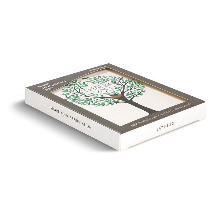 10 Thank You Note Cards!! Lush tree branches on the exterior of these note cards circle the words “Thank You” and create an inviting space to relay your appreciation through a handwritten note.